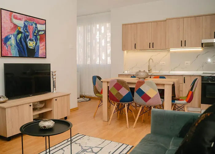 Cozy Apartment In Central Tirana has an equipped kitchen provided with an oven and a stovetop. The 70 m² Cozy Apartment In Central Tirana is within easy reach of the nearest bus stop Teatri.